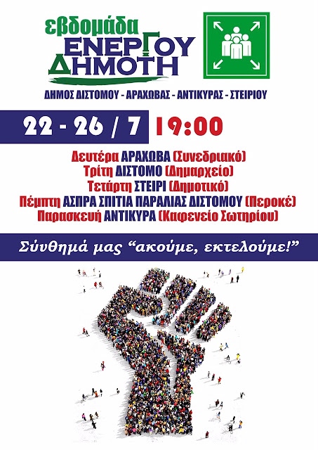 Η παρουσία όλων σας είναι απαραίτητη, ώστε να αποδώσει αυτή η προσπάθεια που γίνεται για 1η φορά στον Δήμο μας.